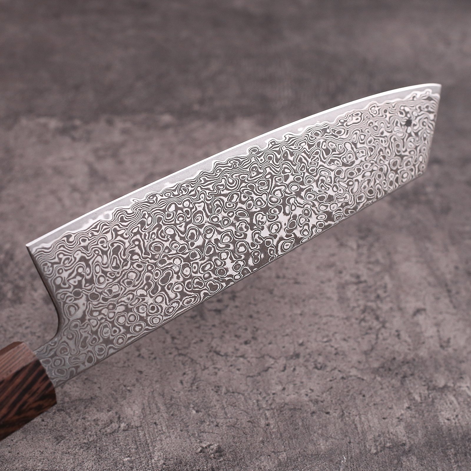 Hochwertiges Küchenmesser mit DV‑10 Damaststahlkern und edlem Wengeholzgriff.